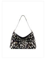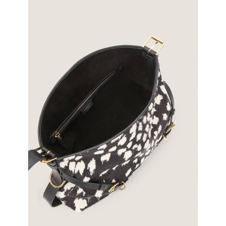 - Medium shoulder bag in pony effect calfskin leather with snow leopard pattern.
