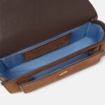 A structured crossbody messenger bag featuring accent Medusa Biggie hardware, crafted from soft nabuck calf leather with smooth calf leather trims and a contrast-colored cotton lining. The style is complete with an adjustable shoulder strap and a front pocket for additional space.