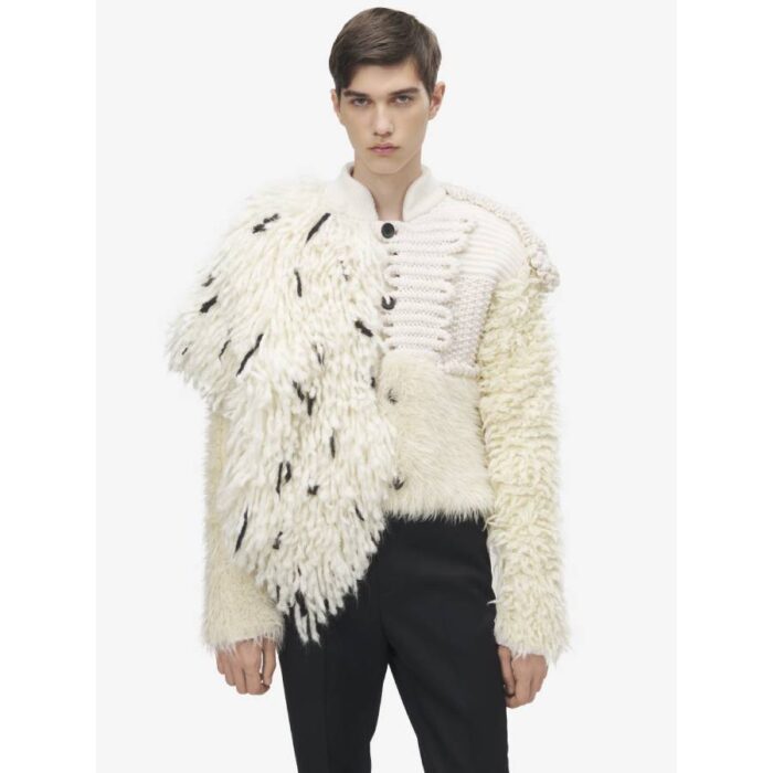 Men’s Asymmetric Patchwork Cardigan in Ivory/Black