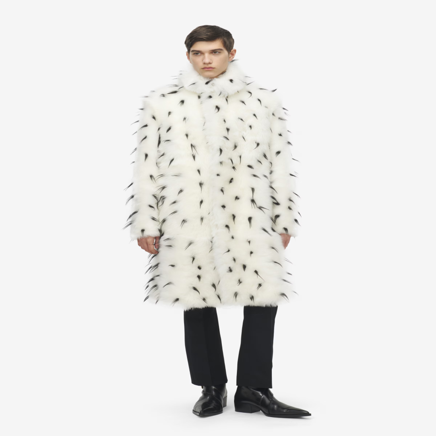 Men’s Shearling Coat in Ivory/Black