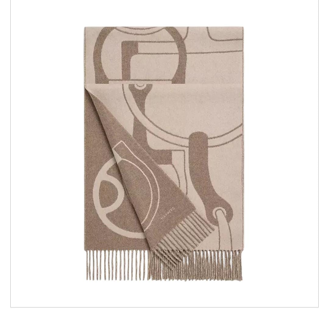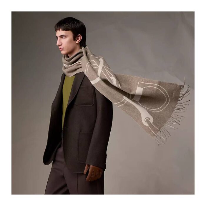 Cyrille Diatkine’s Metal Equestre design is weaved into this graphic bicolor scarf.