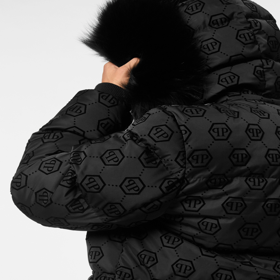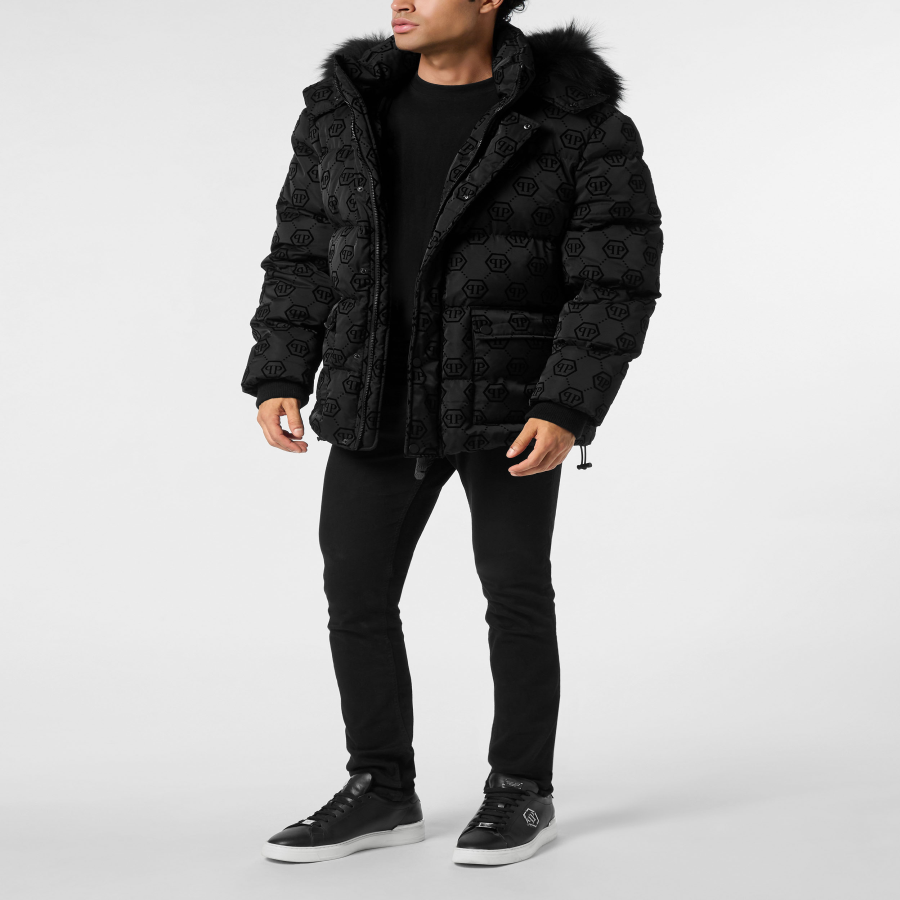 We suggest a contemporary style with this original padded parka with hood. See the details.