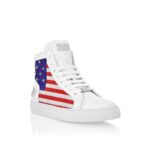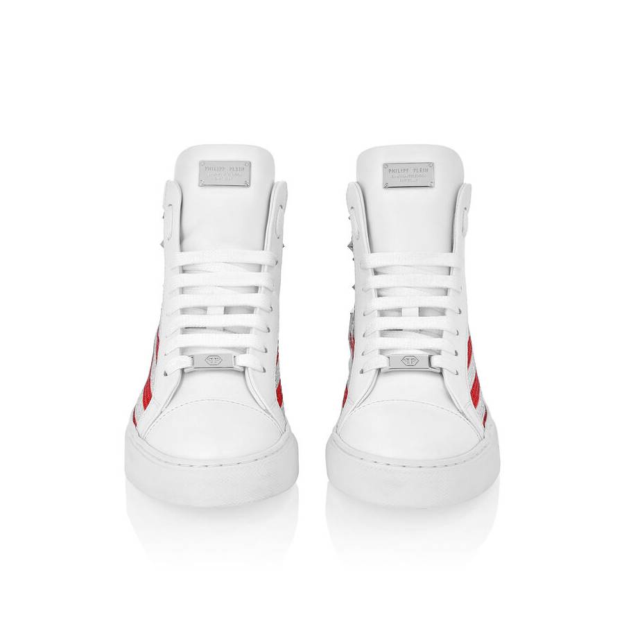 Hi-top leather sneakers.