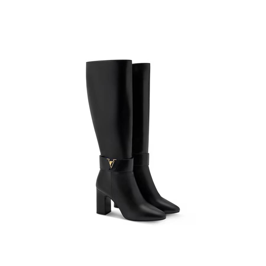 The sleek lines of the Midtown high boot are complemented by smooth calf leather. This elegant style features a distinctive belt detail with an LV Initials accessory in gold-toned metal, which coordinates with the House’s emblematic Capucines bag. A discreet side zip ensures easy fitting, while the stable block heel ensures all-day comfort.
