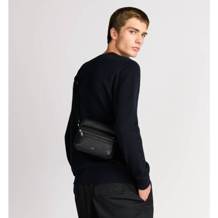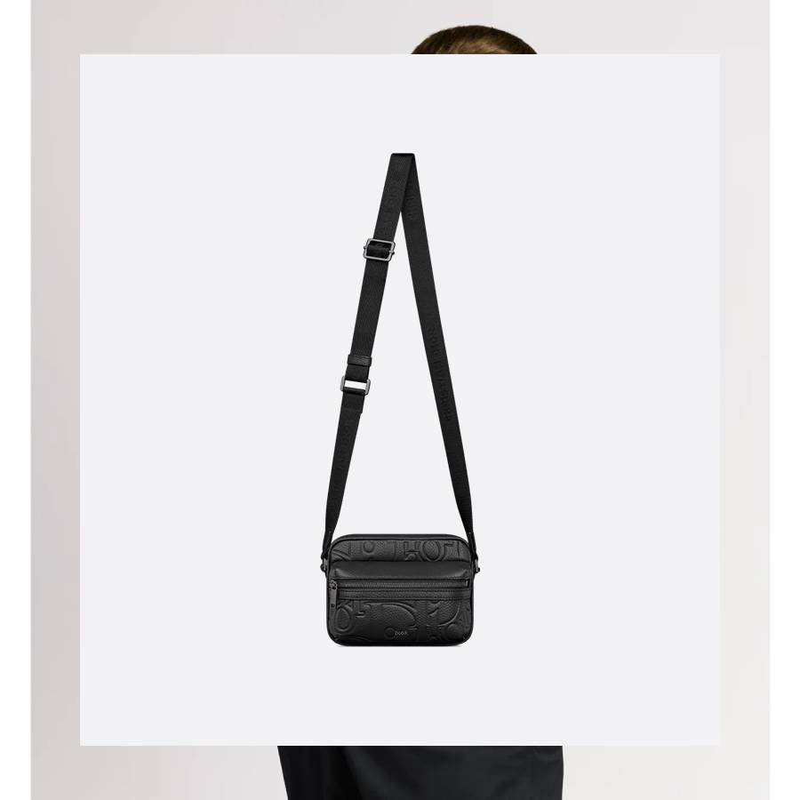 Adjustable Christian Dior nylon jacquard and calfskin shoulder strap