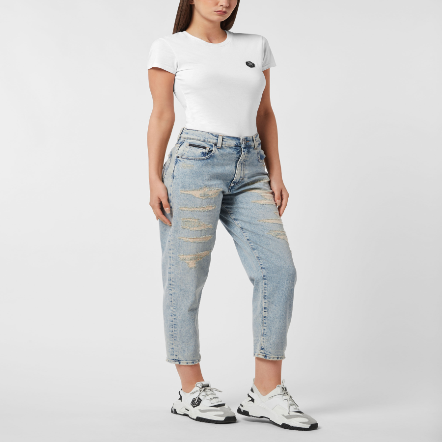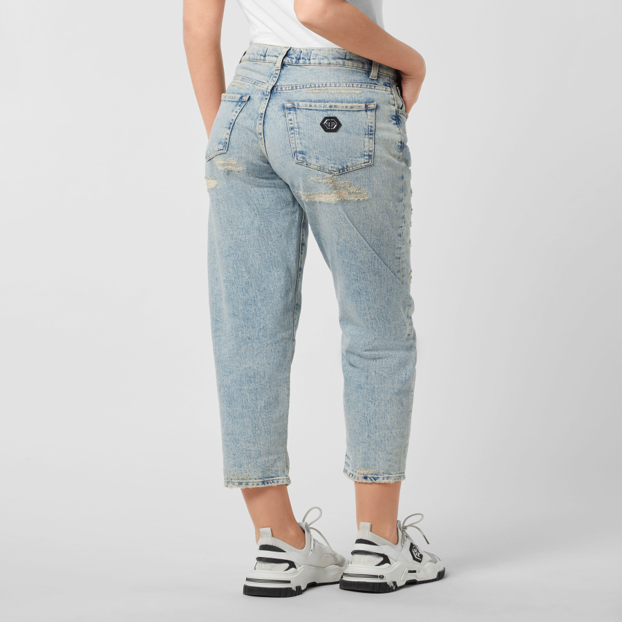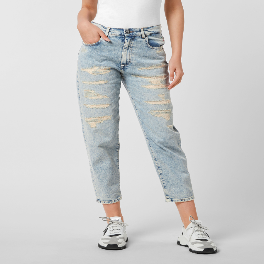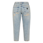 You want to stand out? Then, we suggest these stone washed denim 5 pocket pants with unique and precious details. Find out more.