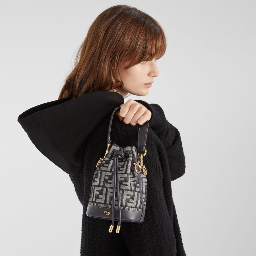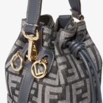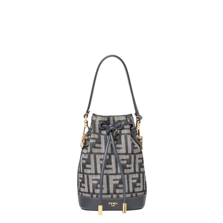 Made of a denim-effect FF jacquard in shades of dark blue. Trimmed with dark blue calfskin.