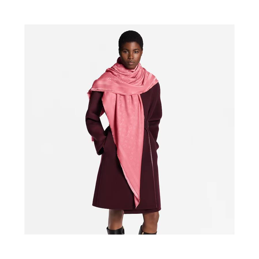 The Monogram Classic shawl now comes in a range of colors styled after the lipstick, allowing every customer to find a shade that enhances her skintone. Styled in a sumptuous silk-wool blend to ensure an elegant drape, it features an allover tone-on-tone Monogram pattern. Timeless and versatile, itís a must-have for any wardrobe.