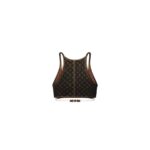 This crop top is cut in a chic, flirty shape with a cross-over front that forms a V-neckline at the front and is fastened at the back with a golden LV clasp. It is made from this season’s signature laser-printed Monogram denim detailed with contrasting topstitching for a timeless structured look.