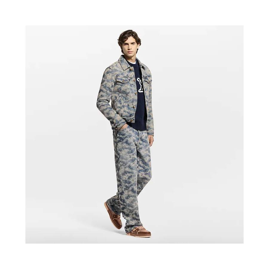 from the British countryside and its famous rolling mists and fog. A sophisticated Foggy Monogram jacquard adorns the indigo fabric, with bleached-effect signatures interspersed with clouds, woven with a tapestry-like effect. A VVN-colored leather Damier jacqueron adds a chic finishing touch. Pair with matching skate pants for a standout set.