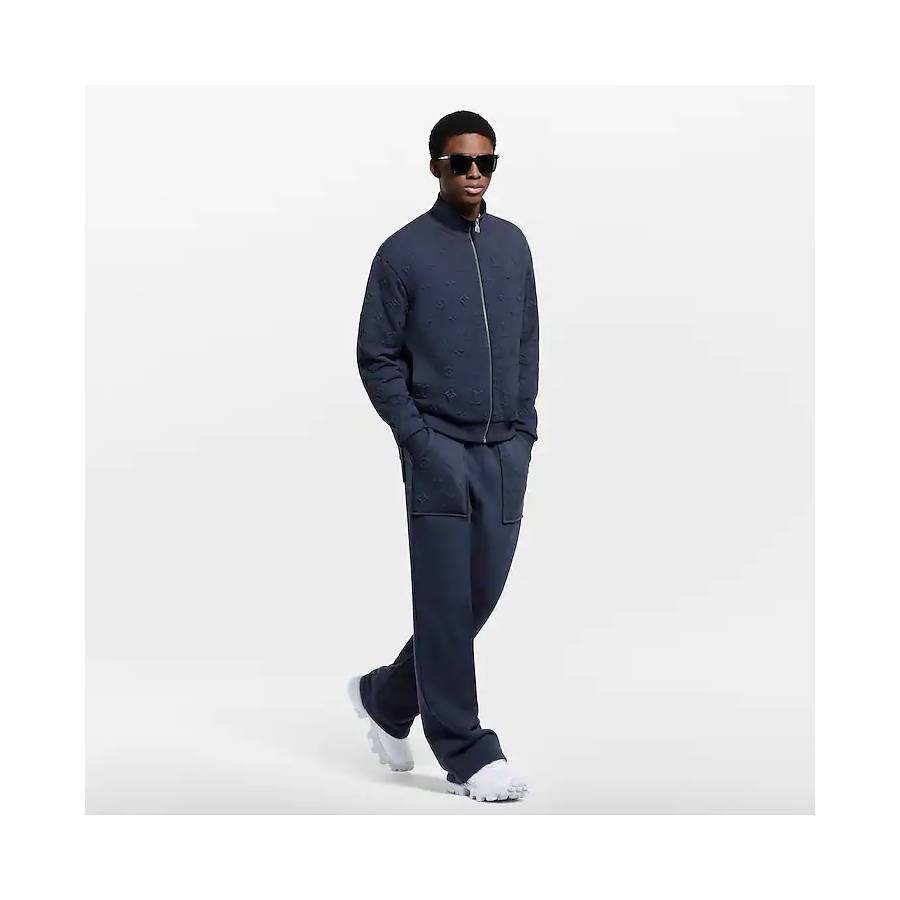 This dark blue cotton-jersey tracksuit top brings a sophisticated signature accent to casual and everyday looks. It is embellished with an allover Monogram motif, incorporated into the soft knit with an embossed effect. An easy piece to mix and match, it makes a chic set with matching pants that is particularly well suited for travel.