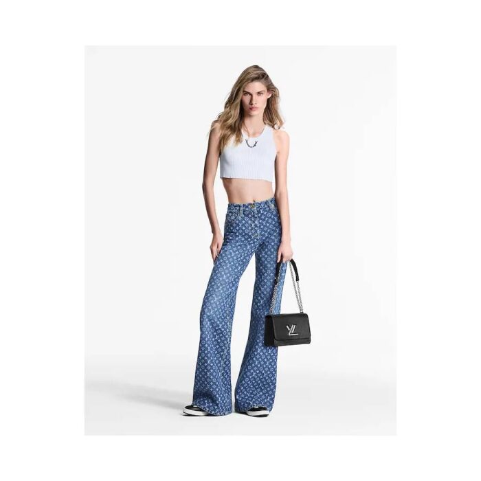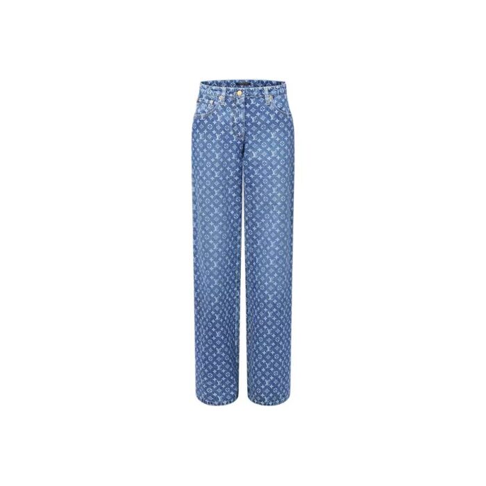 These jeans make a chic statement in comfortable washed denim featuring the iconic Monogram motif as a graphic allover signature, while contrasting yellow topstitching highlights the construction for a classic look. They are cut in a casual flared shape for elevated everyday styling, complete with five practical pockets.