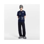 This short-sleeved crewneck is crafted from an organic cotton blend in rich dark blue tones, featuring a graphic intarsia motif with scaled-up LV and Monogram Flower signatures. Louis Vuitton craftsmanship is evident in the subtle tonal contrasts and stitch variations. This casual style transitions effortlessly between outdoor and everyday looks, bringing a bold signature accent to any ensemble.