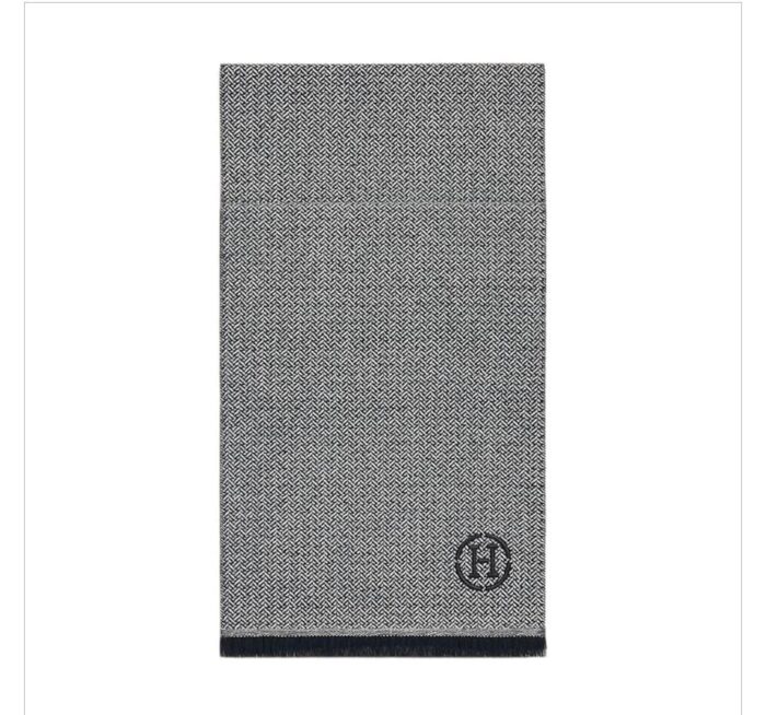 Entirely handmade in Nepal, the weave of this cashmere scarf allows understated “H” designs to appear. Each scarf is signed with an embroidered leather “H”.