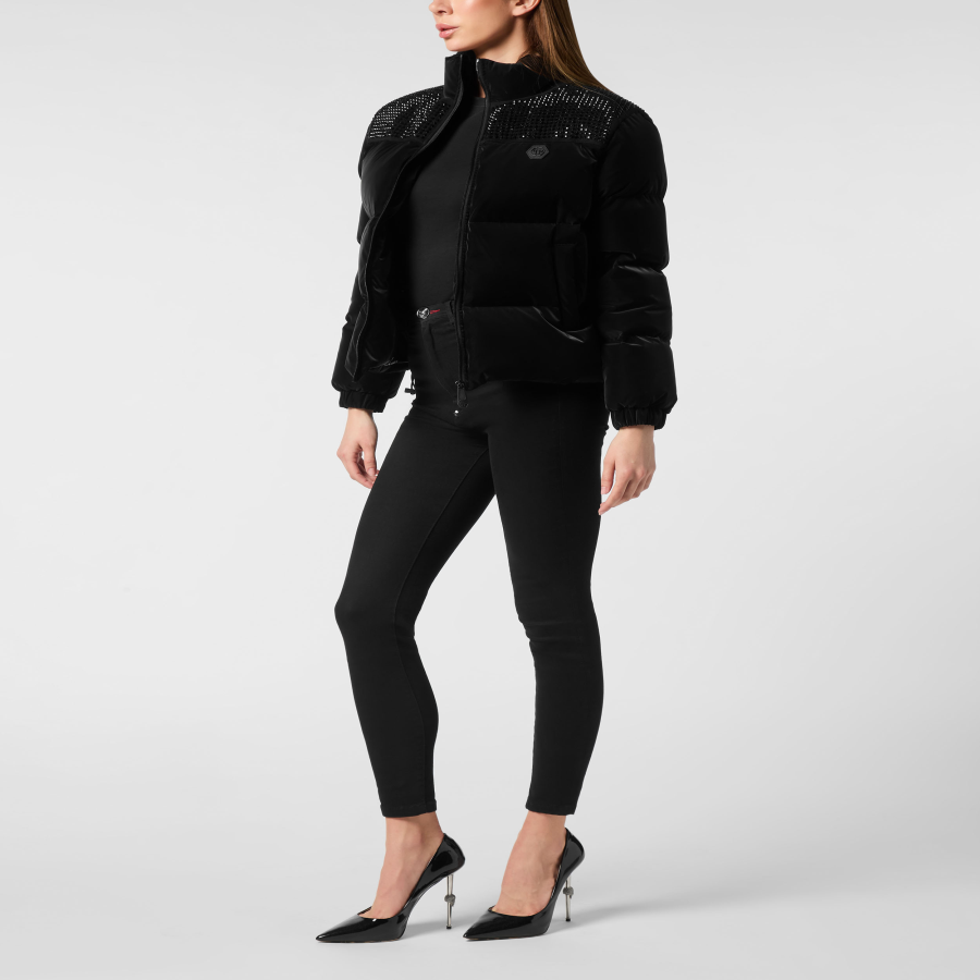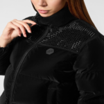 We put together sport and glam style in one garment that can perfectly express your own personality. Check out this high-shine padded nylon down jacket with defining details.