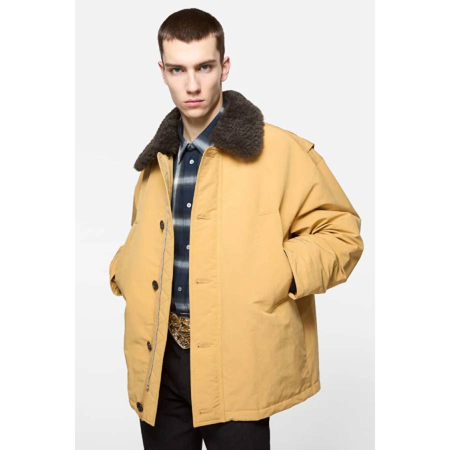 - Shell: 100% Nylon, Collar: 100% Lamb shearling, Lining: 100% Polyester, Filling: 100% Polyester