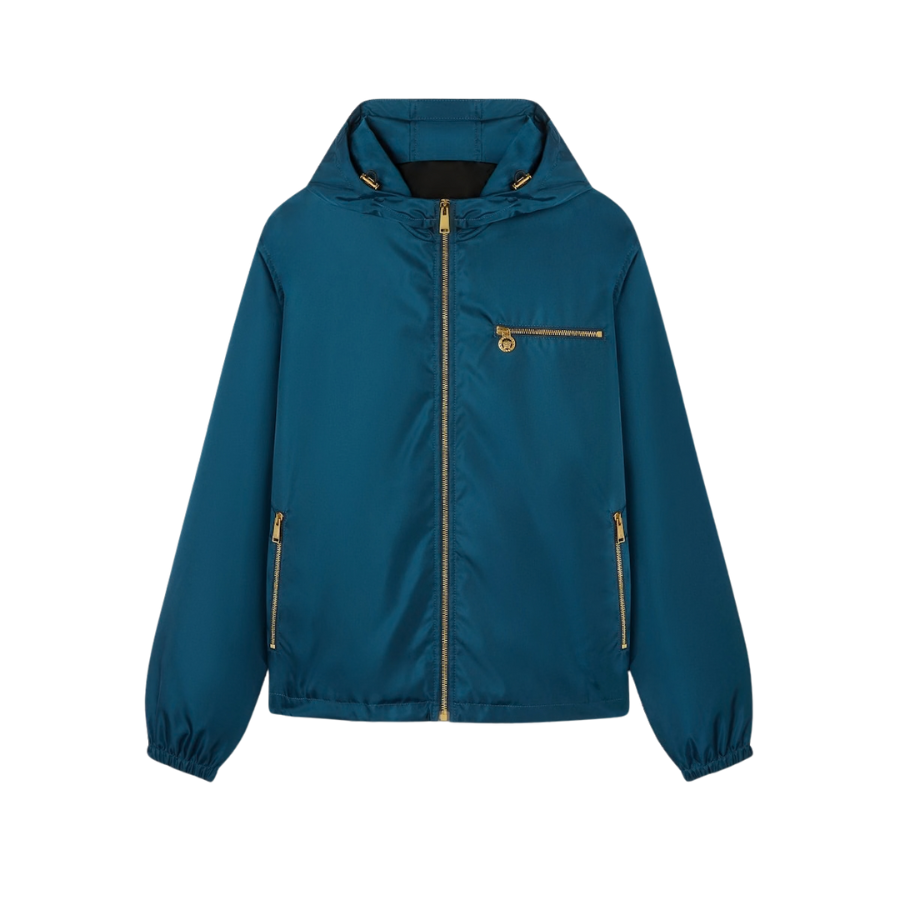 This nylon windbreaker jacket has light padding and features a drawstring hood and a Medusa Biggie zip puller on the chest pocket.