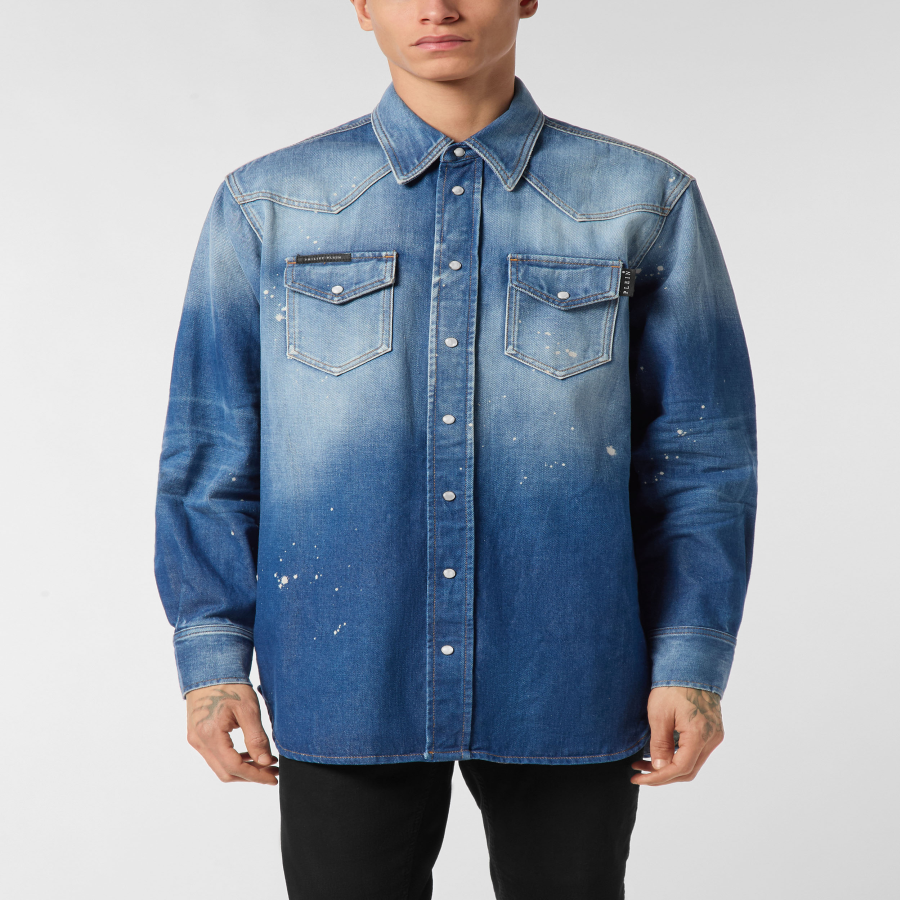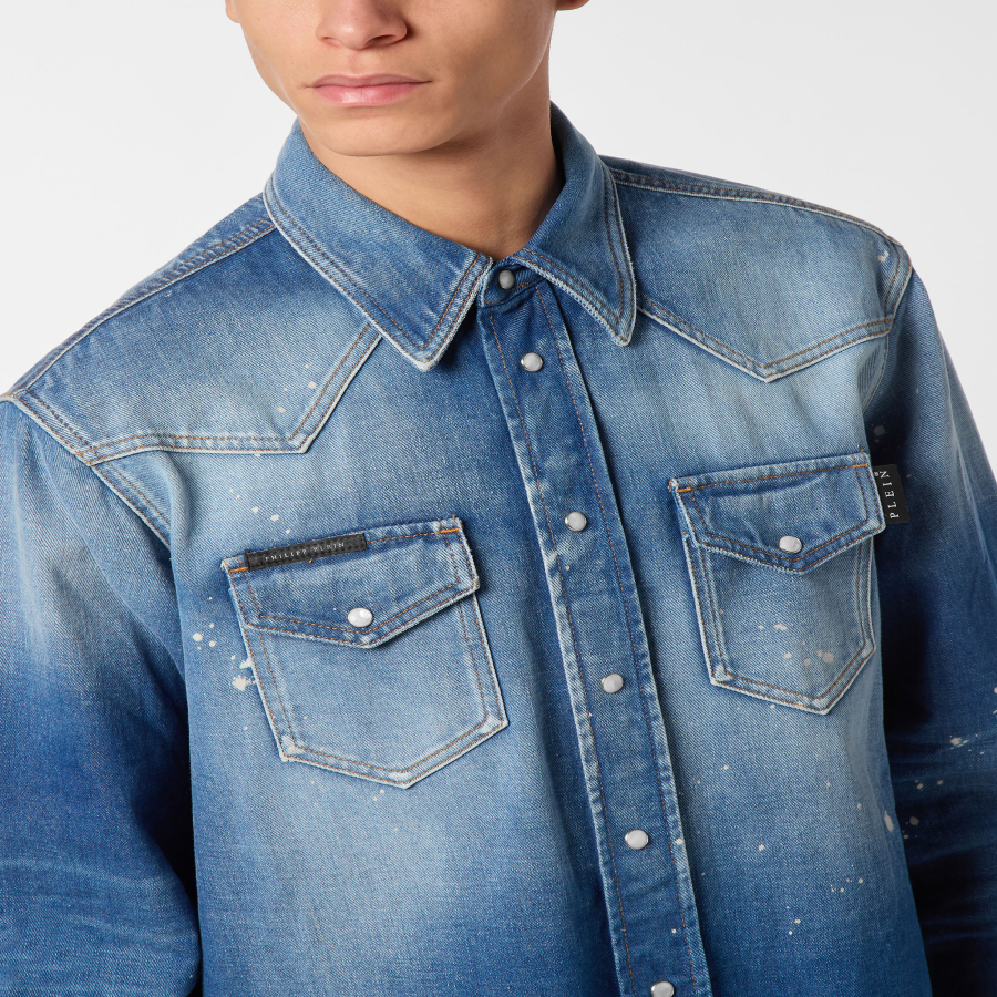 Add a whiff of uniqueness to your look with this denim shirt featuring one of the Brand’s iconic decors. Discover its features.
