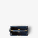 Featuring interiors lined in blue denim-effect FF jacquard with a flocked texture. Two internal compartments divided by a stiff partition with a buttoned internal pocket. Gold-finish bar, closure and metalware.
