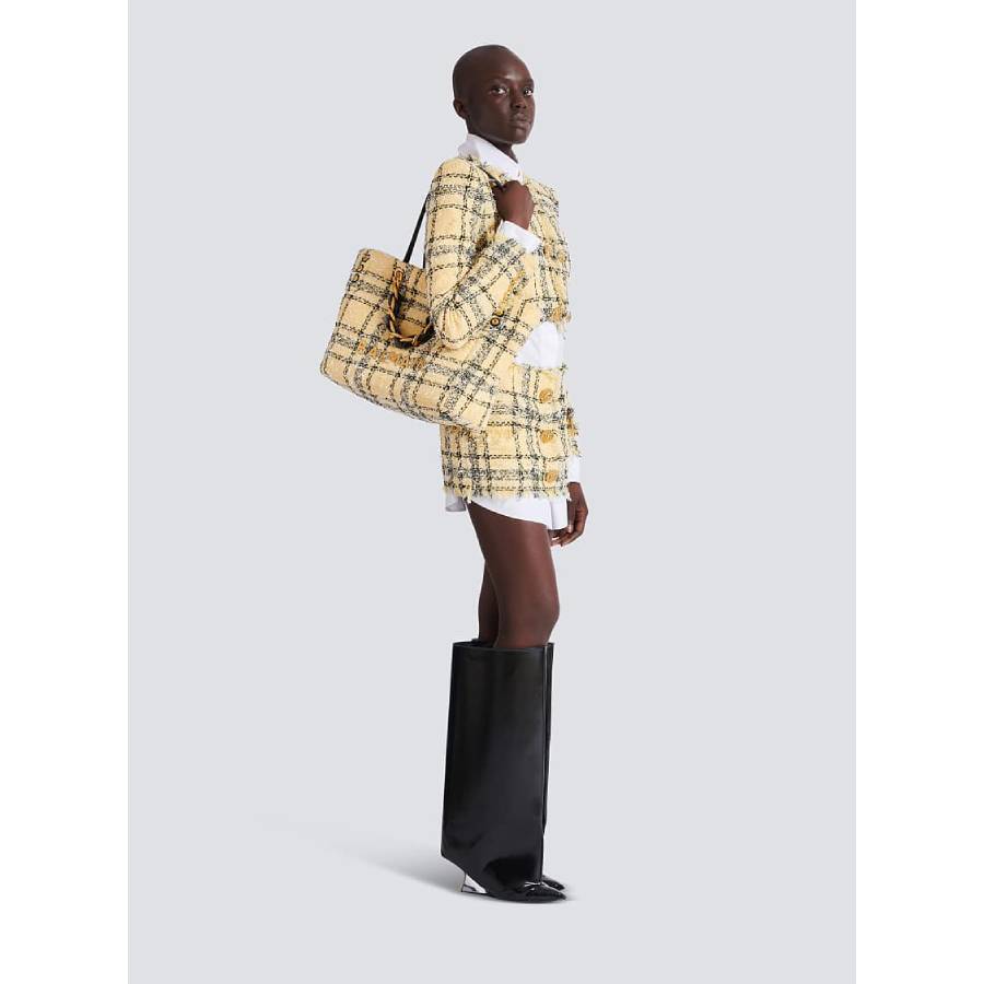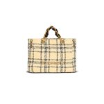 - Leather straps and chain handle interlaced with leather