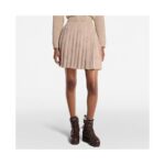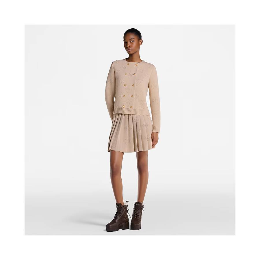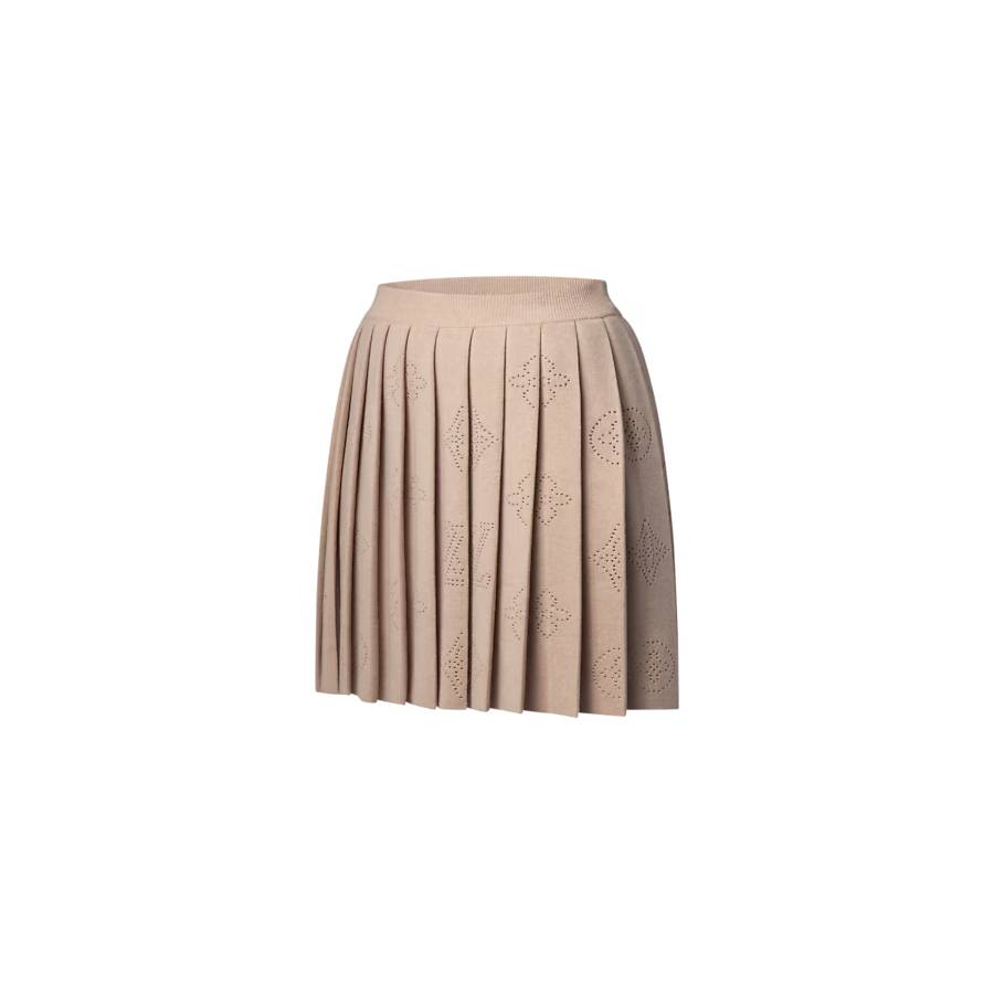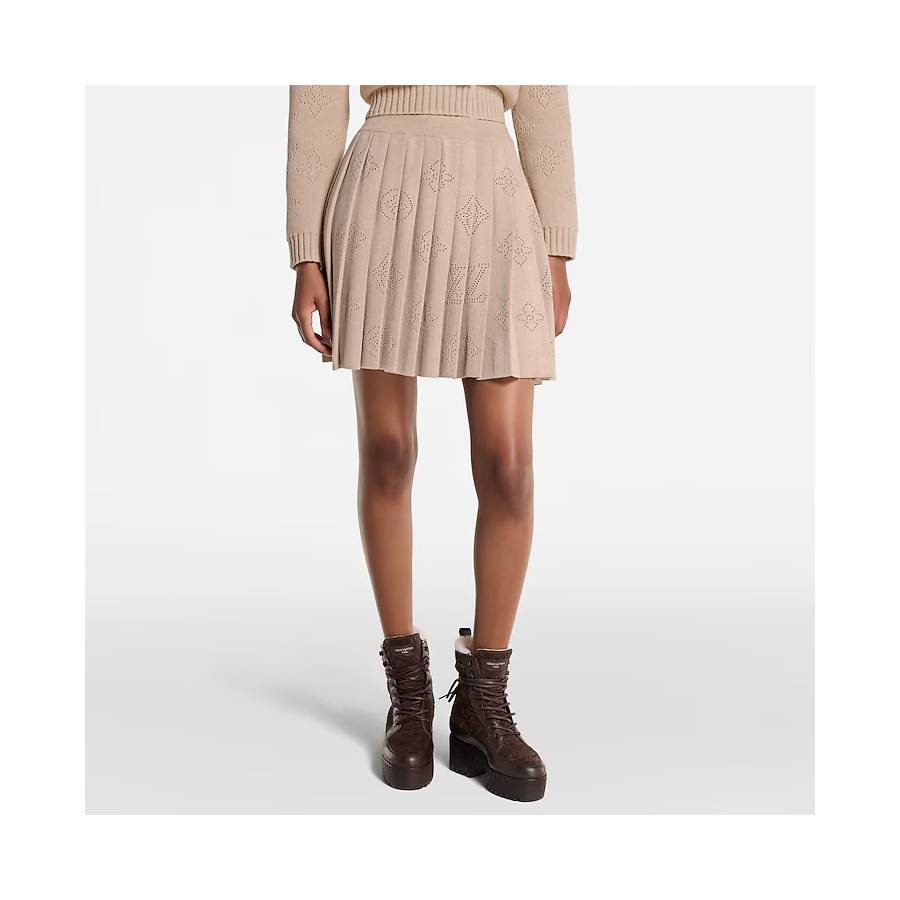 Chic, sporty details elevate this mini skirt with an elegant, modern air. It is crafted from a soft wool-cashmere blend knit embellished with an oversized openwork Mahina Monogram motif for a fresh signature finish. It is cinched with an elasticized ribbed waistband and pleated throughout for airy movement.