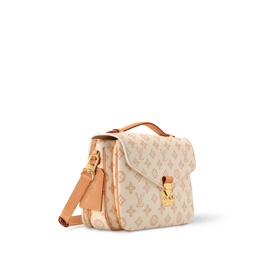 To celebrate the 130th anniversary of the Louis Vuitton signature, the House has reimagined the emblematic pattern with this elegant Monogram Origine canvas. This Pochette Métis MM features the vintage-inspired version in a Monogram Origine Lin palette that complements any look. Trimmed with cowhide, the versatile design is lined with striped fabric, and fastens with an iconic S-lock.