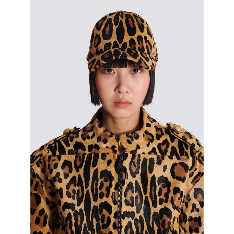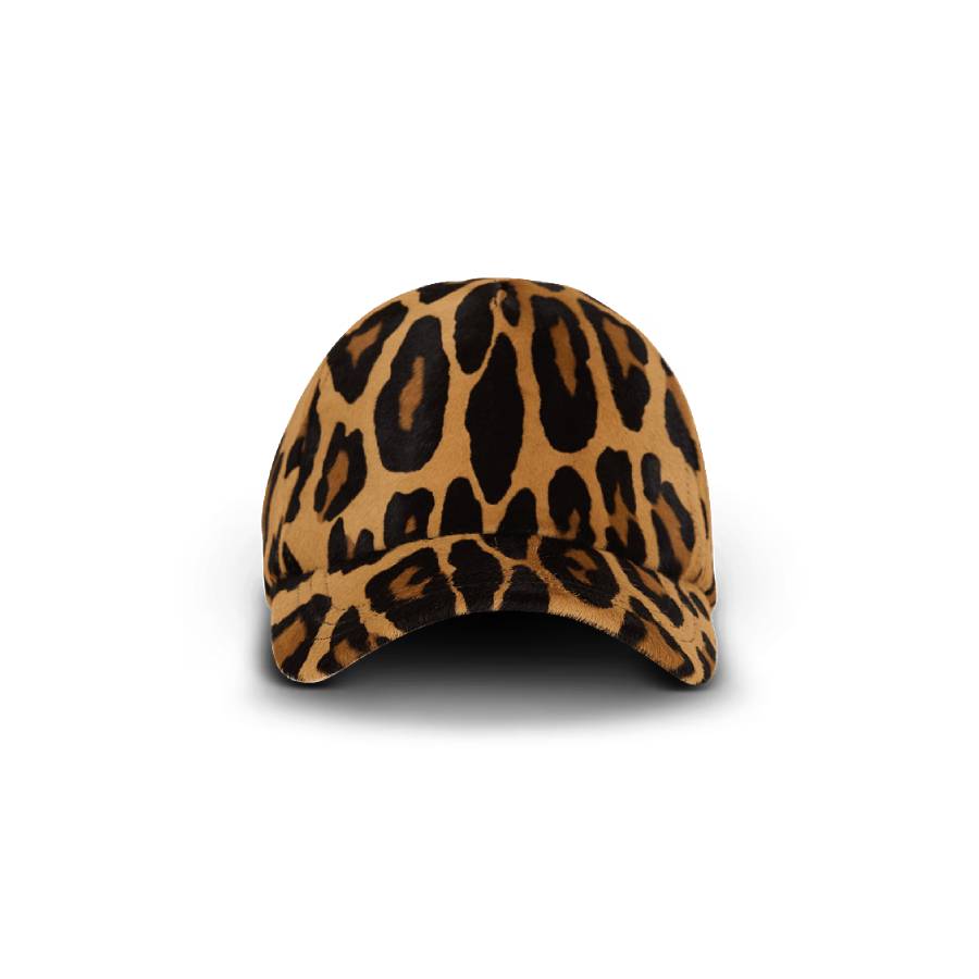 Ponyskin-style leather cap with leopard pattern