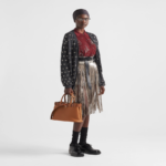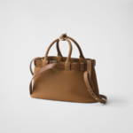 Clean lines and refined elements express the dual aesthetic of Prada that moves between simplicity and detail, functionality and elegance. This leather bag, with nappa interior and center pocket, summarizes the codes of the brand in a pragmatic but sophisticated design. The silhouette is embellished with an elegant crocodile belt that gives the accessory a unique, precious touch. The embossed lettering logo in 22 karat gold-leaf decorates the modern and versatile style.