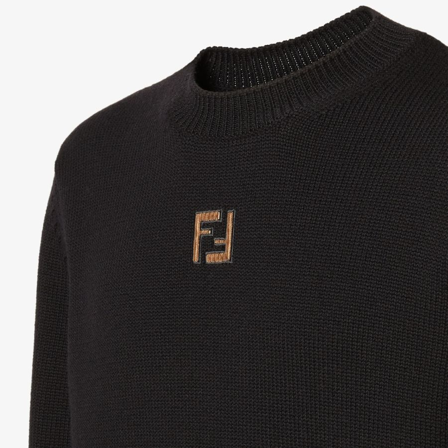 Regular-fit crew-neck pullover. Made of grey wool yarn. Customised with a brown corduroy micro FF detail on the front.