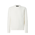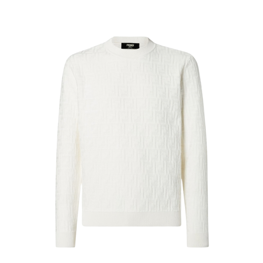 Regular-fit crew-neck pullover. Made of white cotton yarn with FF logo embroidered all over in the same colour. Finished with ribbed edges.