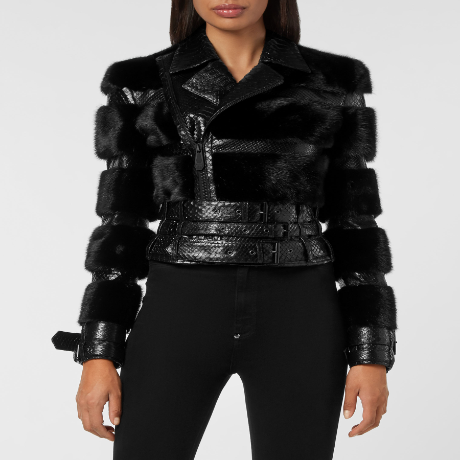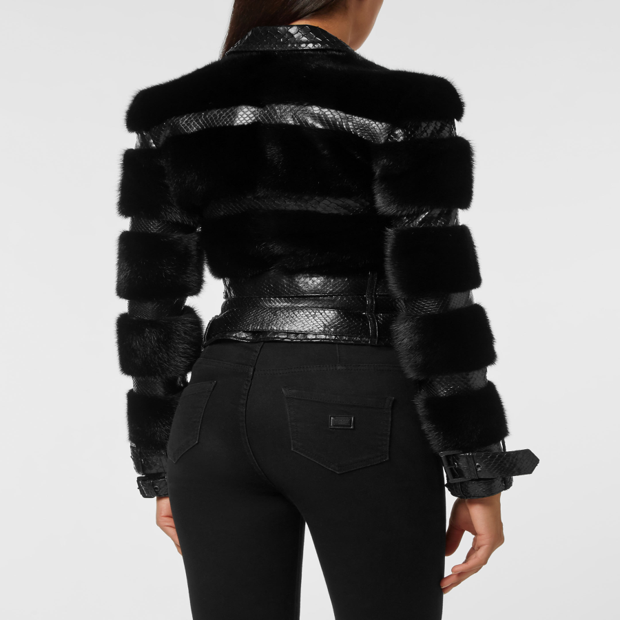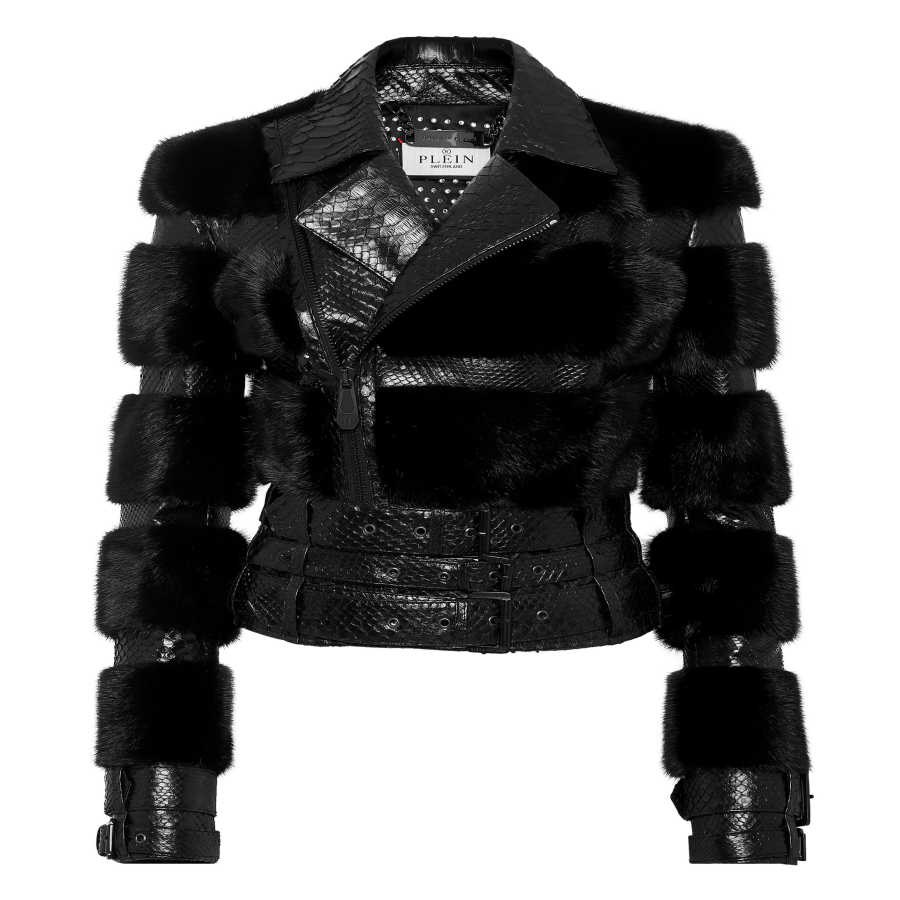 Home Women Clothes Coats & Jackets Python Leather Biker Jacket