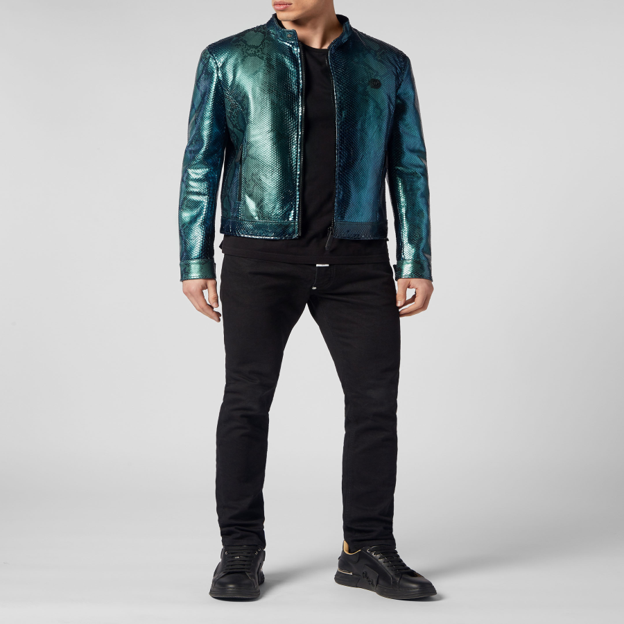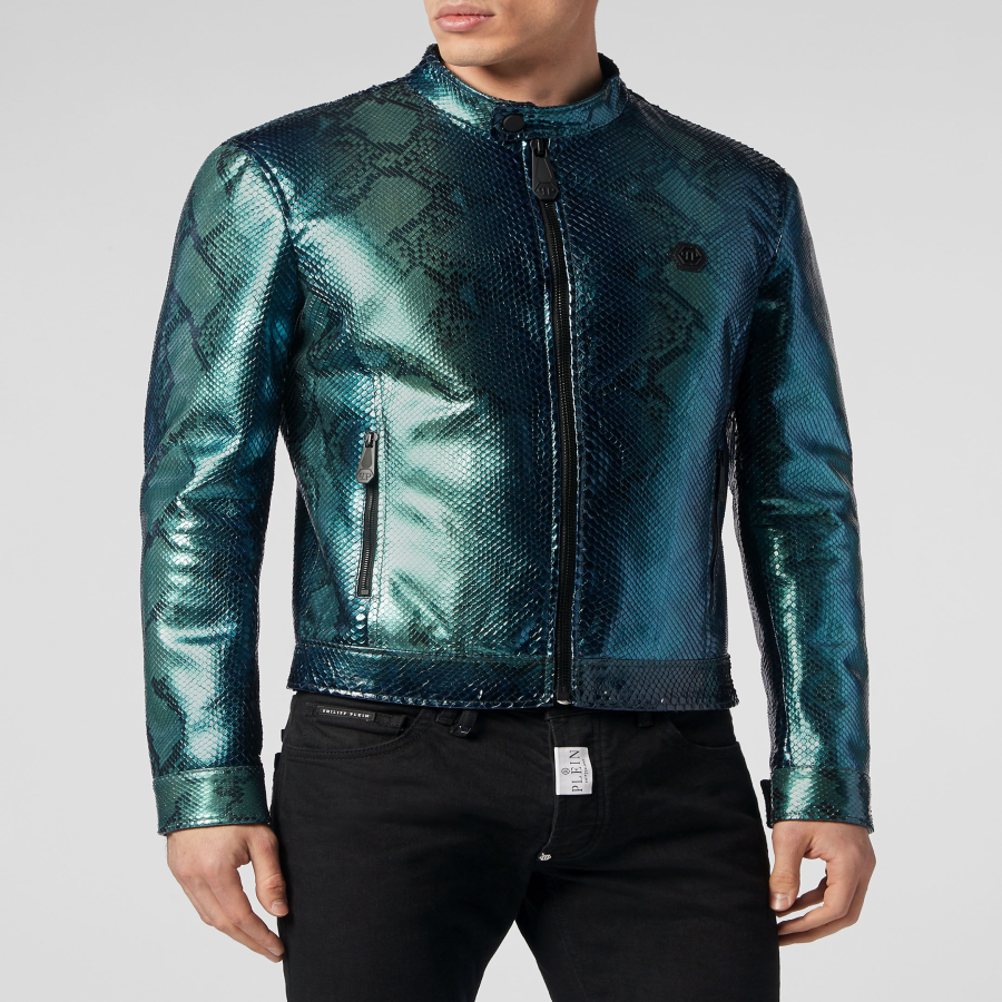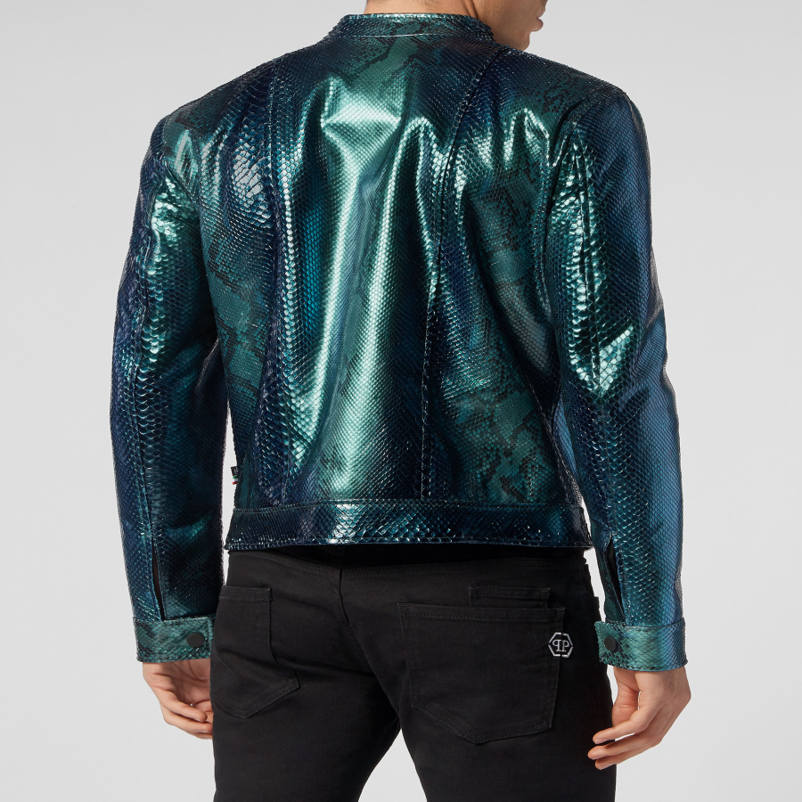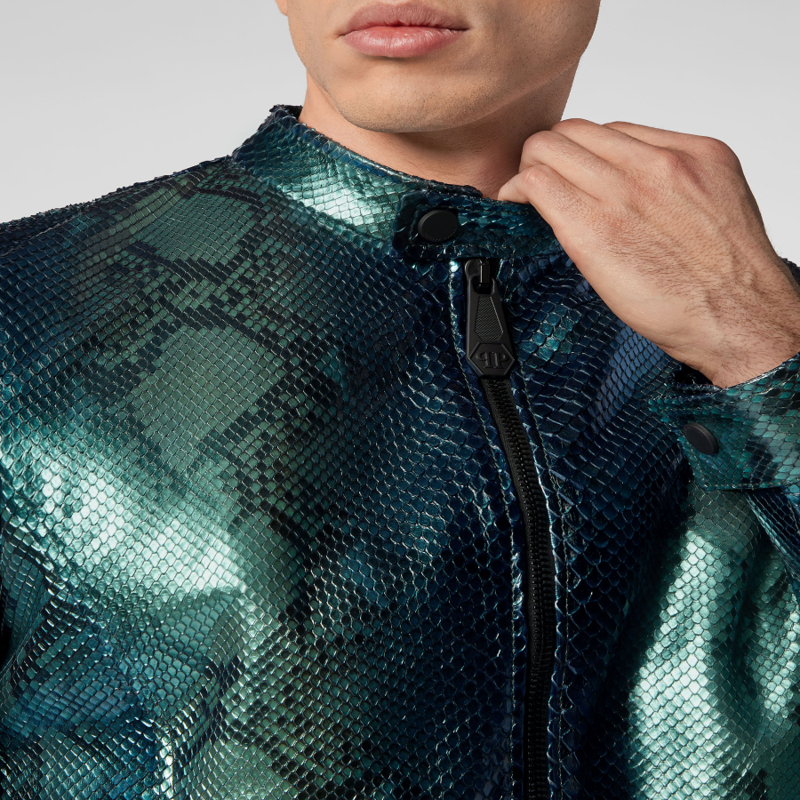 Choose luxury all round. Choose this python skin biker jacket.