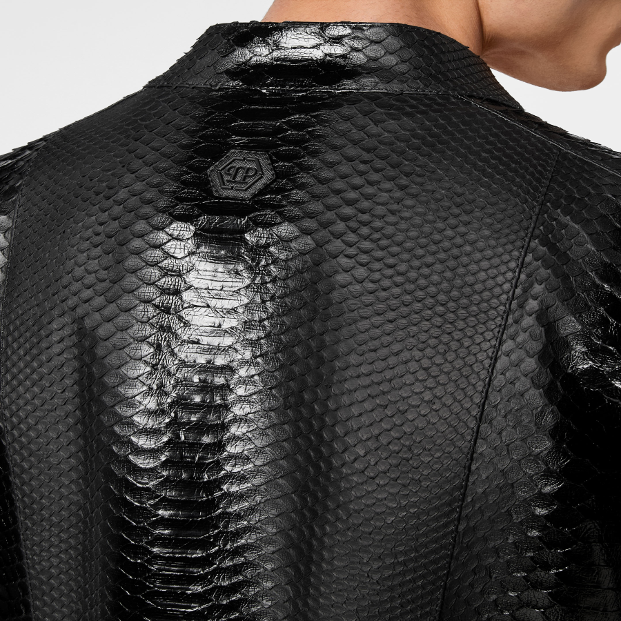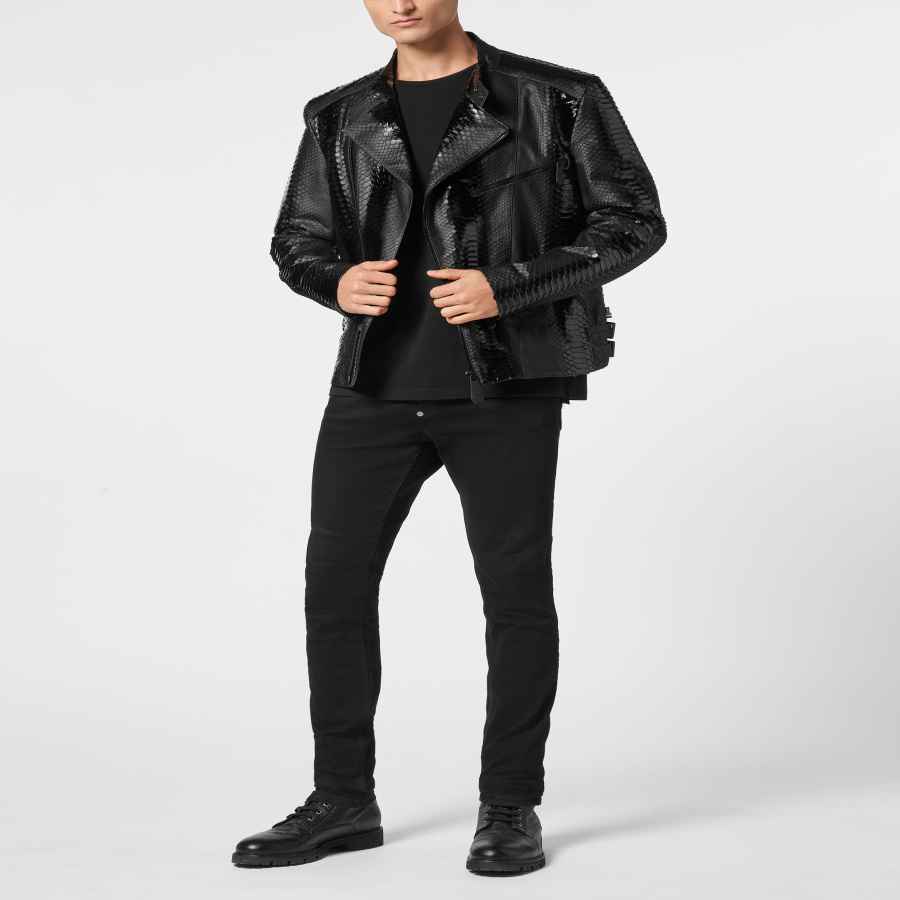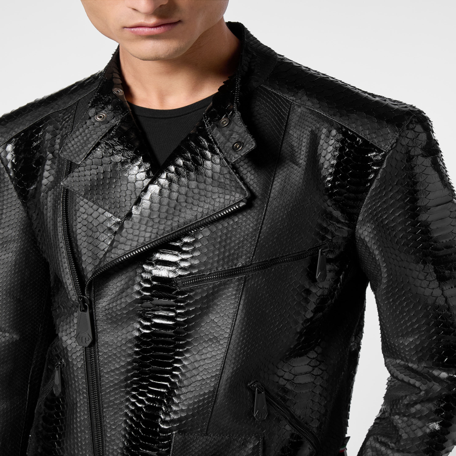 This python leather bomber skull is designed to elevate everyday looks with a confident and refined attitude, making it ideal to style with statement pieces or pared back essentials.