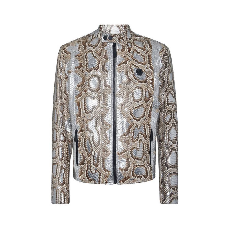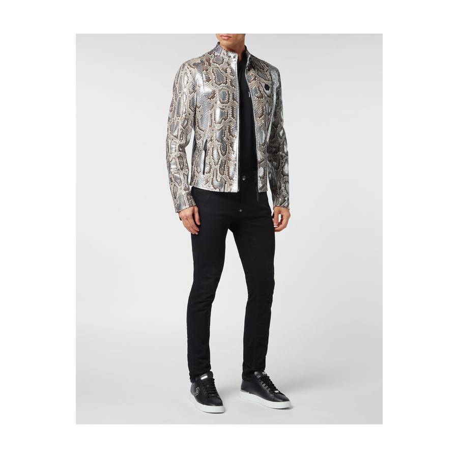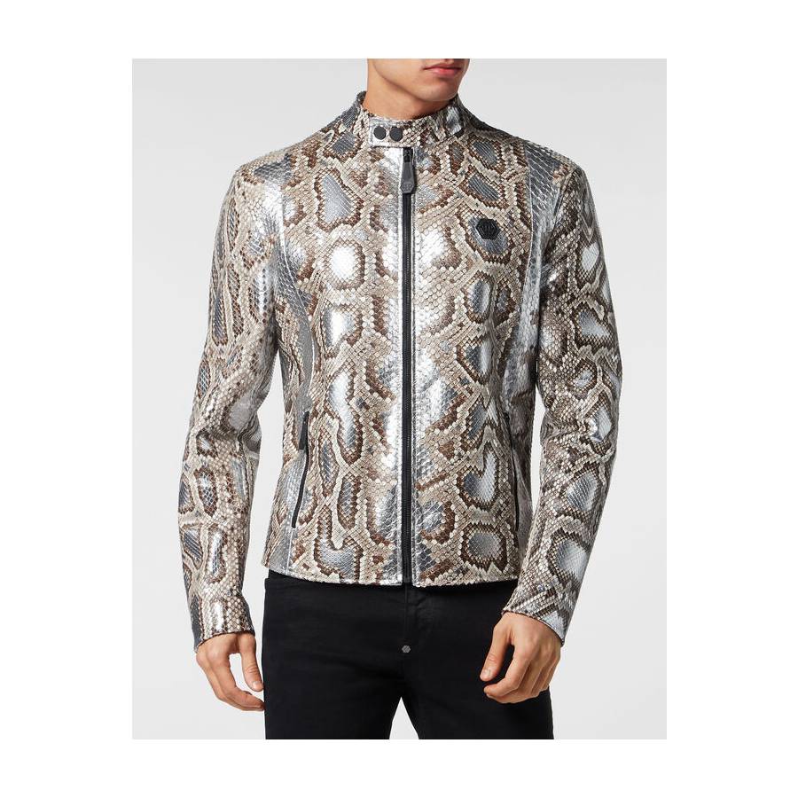 Home Men Clothes Jackets & Sweatshirts Python Leather Moto Jacket