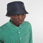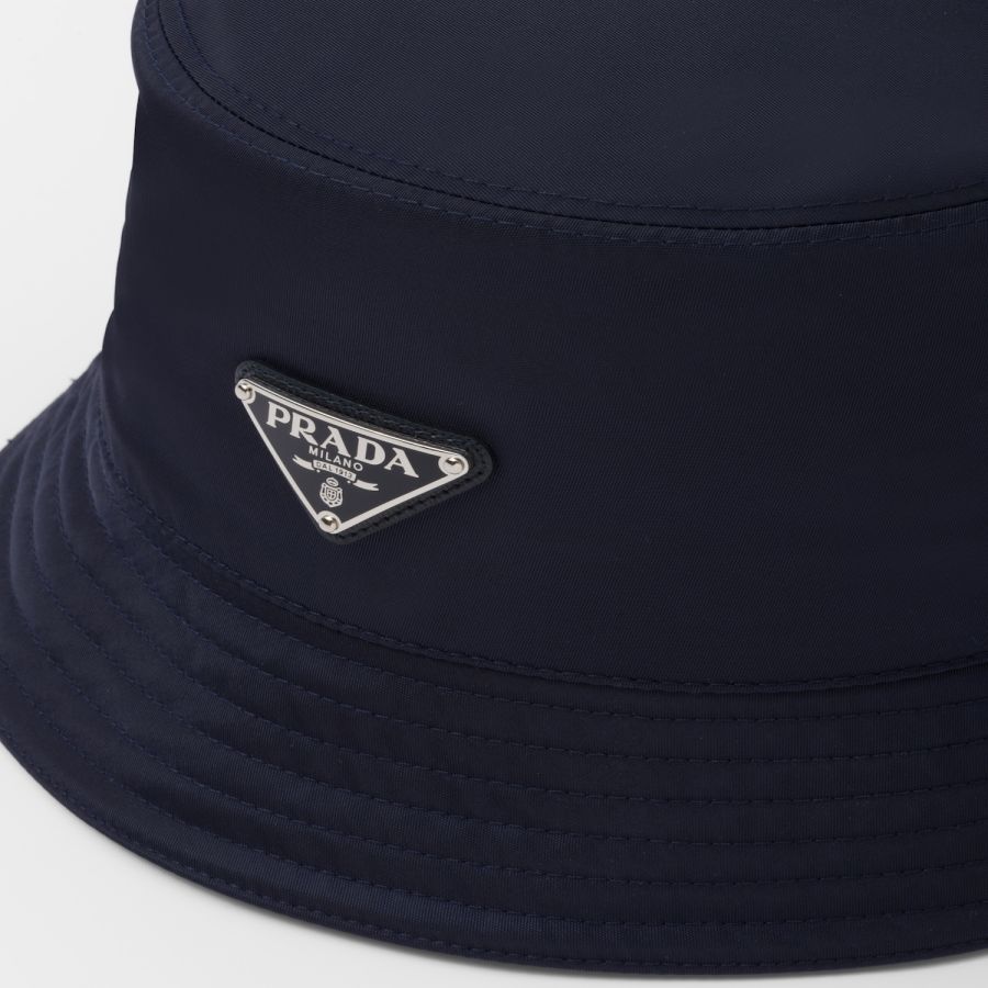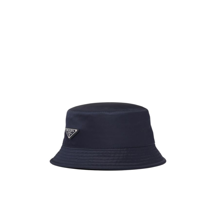 Adorned with the iconic enameled metal triangle logo, this bucket hat is made from Re-Nylon, a regenerated nylon yarn produced through a process of recycling and purifying plastics recovered from the ocean, as well as fishing nets and textile fibers.