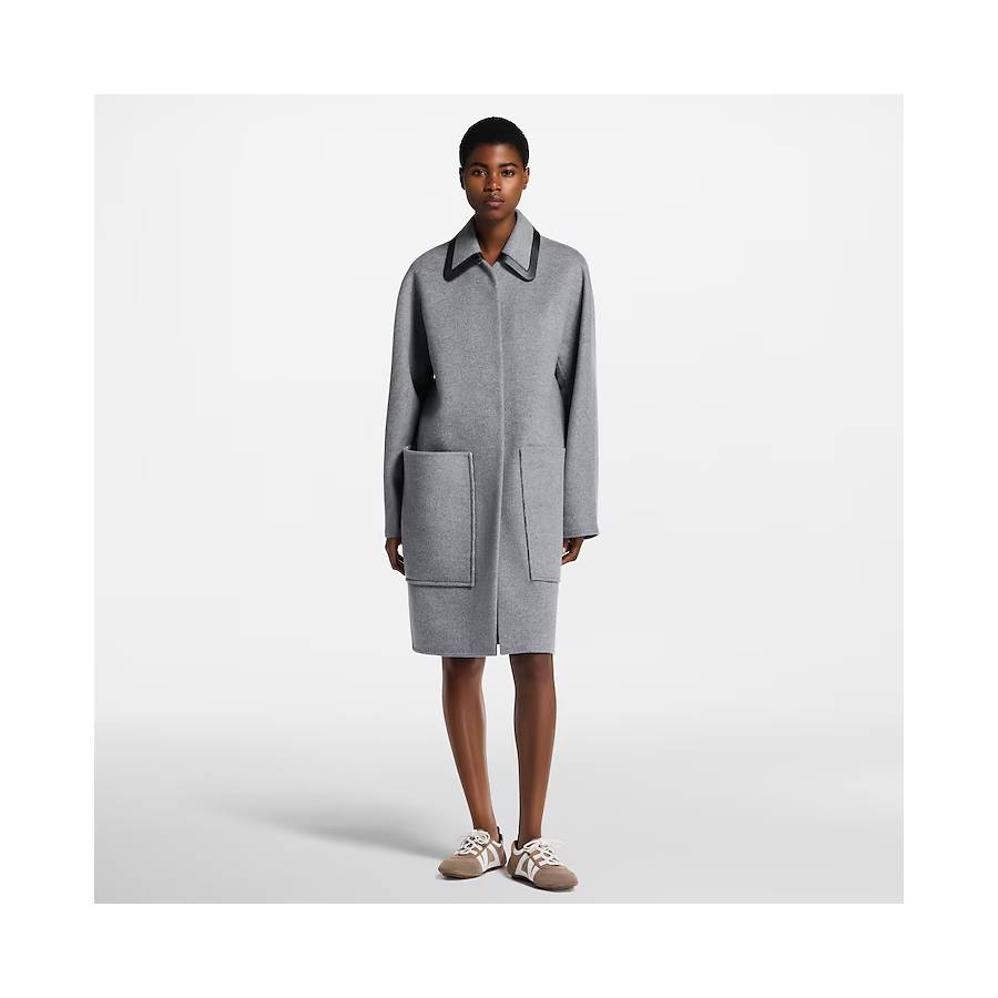 This coat has elevated appeal in a cozy double-face wool-silk blend which is signed on the inside with the iconic Monogram motif. It is cut in a relaxed straight shape, with a covered snap-button fastening and large patch pockets. The removable collar is trimmed with black leather piping for a sleek, modern touch.