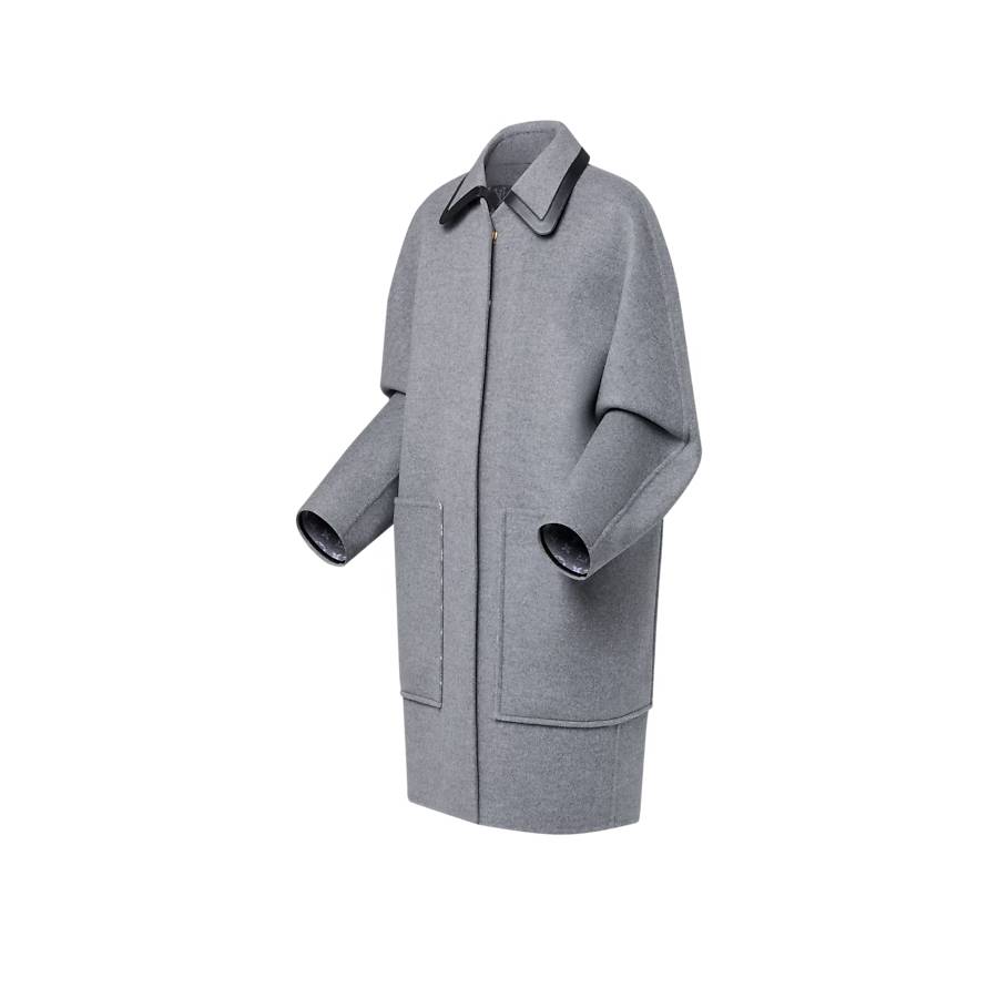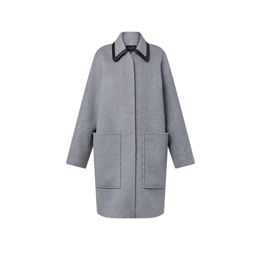 This coat has elevated appeal in a cozy double-face wool-silk blend which is signed on the inside with the iconic Monogram motif. It is cut in a relaxed straight shape, with a covered snap-button fastening and large patch pockets. The removable collar is trimmed with black leather piping for a sleek, modern touch.