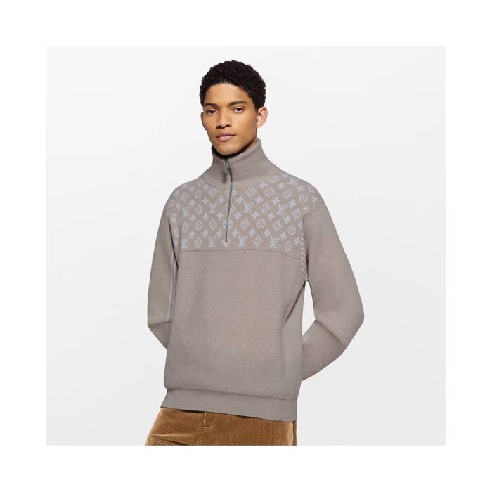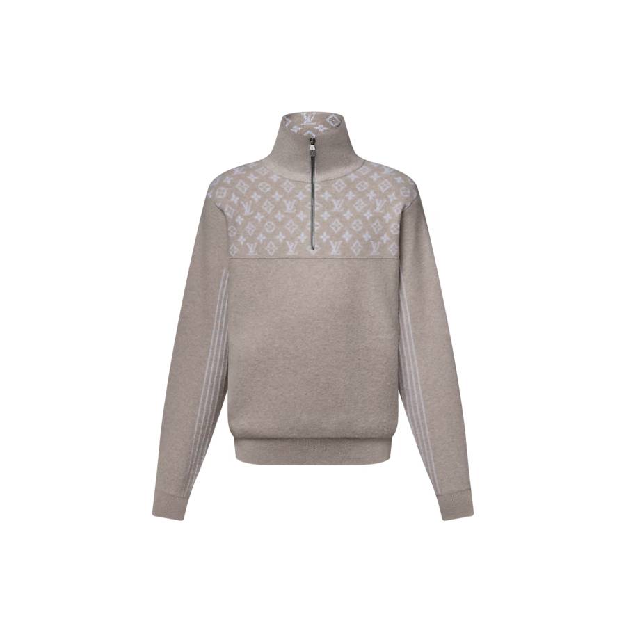 With its timeless beige tones, this casual yet elegant half-zip sweater makes a perfect addition to any wintery wardrobe. It features a contrasting white Monogram motif inside the collar and on the yoke, along with sporty white stripes under the sleeves. Crafted from a warm and luxuriously soft wool blend, it can be dressed up or down with either a shirt or t-shirt.