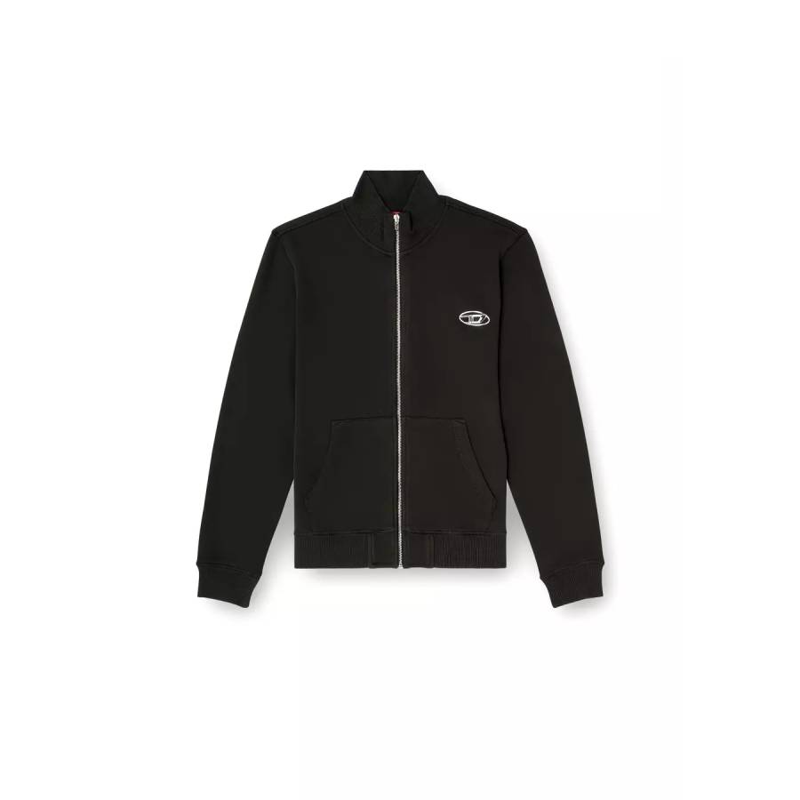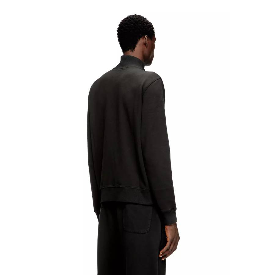 Unbrushed fleece sweatshirt in organic cotton, with a mock neck and zip closure. The cuffs and bottom hem are ribbed to ensure an optimal fit. The Oval D logo on the front is made with silver injection printing.