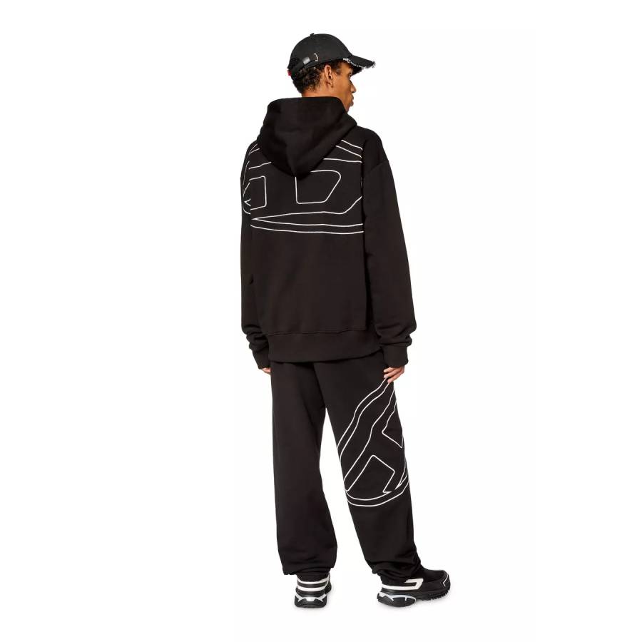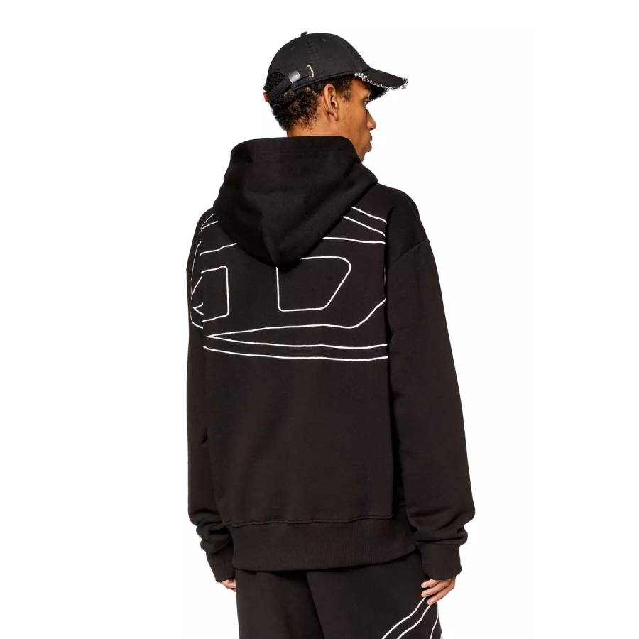 Mens hooded sweatshirt in loopback jersey, crafted using organic cotton. This style has a regular fit and a big oval D embroidered on the back. A smaller version of the logo accents the front.