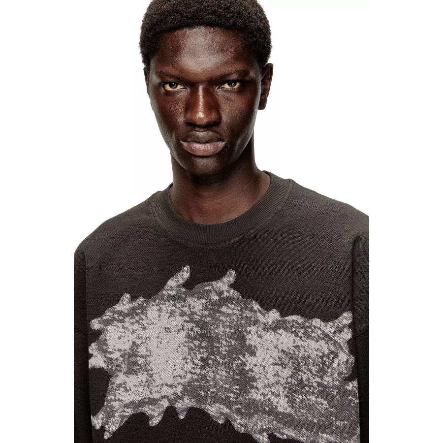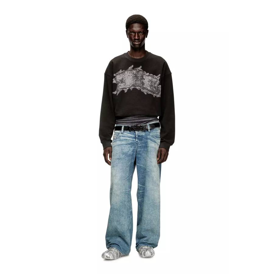 This men’s sweatshirt is an exclusive FW25 Runway Show piece. Crafted using organic cotton and a percentage of recycled fibres, it features a relaxed fit and a lived-in washed finish. The ‘DSL’ graphic print on the chest takes cues from the show’s unconventional graffiti setting: a giant installation spanning 3 kilometres of painted fabric.