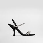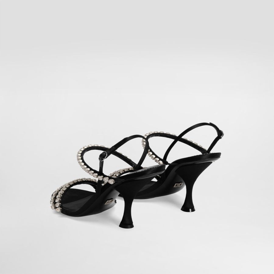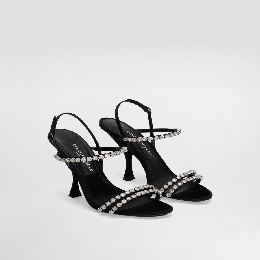 Satin sandals with rhinestone chain: