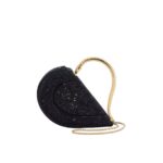Masterfully crafted with black Neige Pavé Crystals hand-applied on a suede base, the Serpenti Cuore 1968 top-handle bag boasts a sparkling interpretation of this distinctive heart shape. Drawing inspiration from Bvlgari’s archives and unrivalled jewellery DNA, the bag’s serpentine metallic handle recalls a famed Serpenti jewellery watch from 1968 evoking the snake’s sinuous movements. The distinctive snake body-shaped chain is detachable, allowing it to be worn in different ways. Equipped with a single compartment, the model is complete with a press-button closure, an internal card pocket and a metal tag with the Bvlgari logo inside. 18 x 11 x 4 cm – 7.1 x 4.3 x 1.6 inches. Made in Italy.