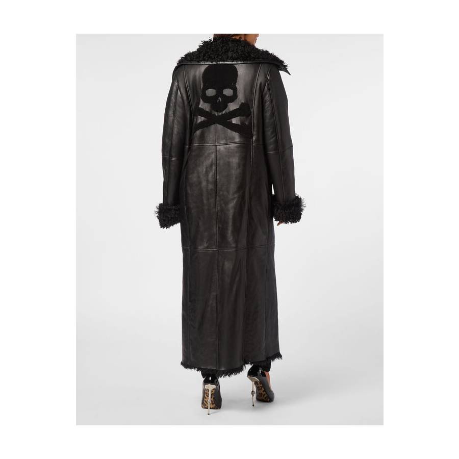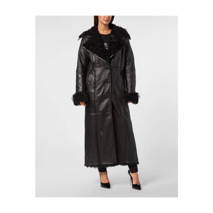Discover the style of Plein with this special Schafsfell maxi-coat. Check out its distinctive details.