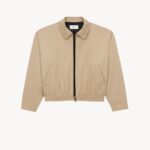 short jacket made with certified cotton, featuring a pointed collar, drop shoulders, and shirred waist.