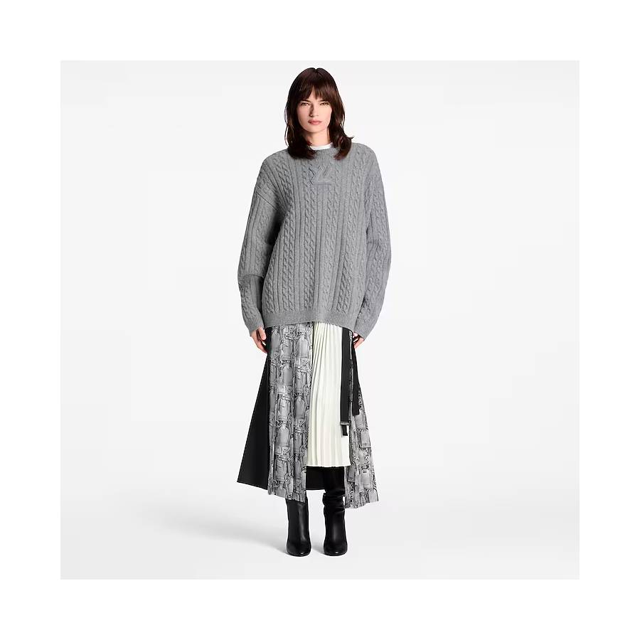This pullover has timeless appeal in a cozy oversized crew-neck shape crafted from wool. It is spun in an intricate cable-knit finish for added texture, while ribbed hems frame the look. The chest is detailed with a sporty LV Twist signature for a subtle House touch.