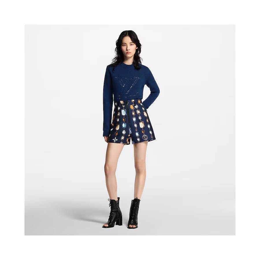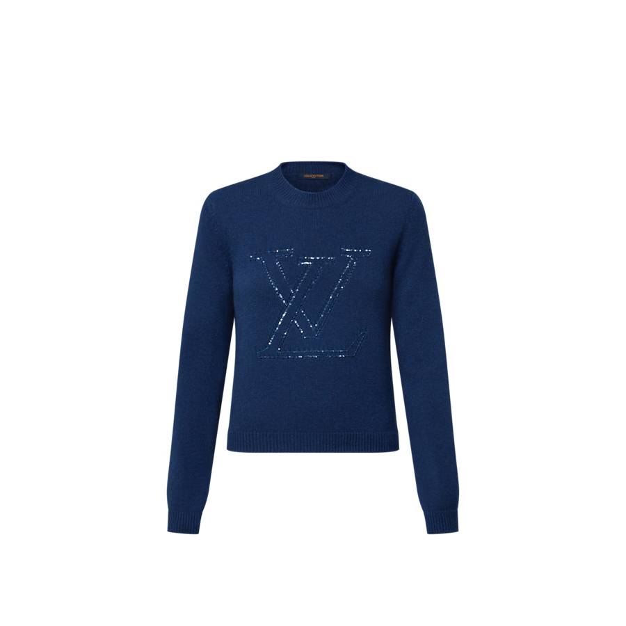 This pullover is effortlessly elegant in a sumptuous cashmere knit in a timeless shade. The shape is casual and comfortable for versatile styling, complete with a crew neckline and neat ribbed hems. The chest is signed with scaled-up LV Initials in tone-on-tone sequins for a shimmering signature finish.