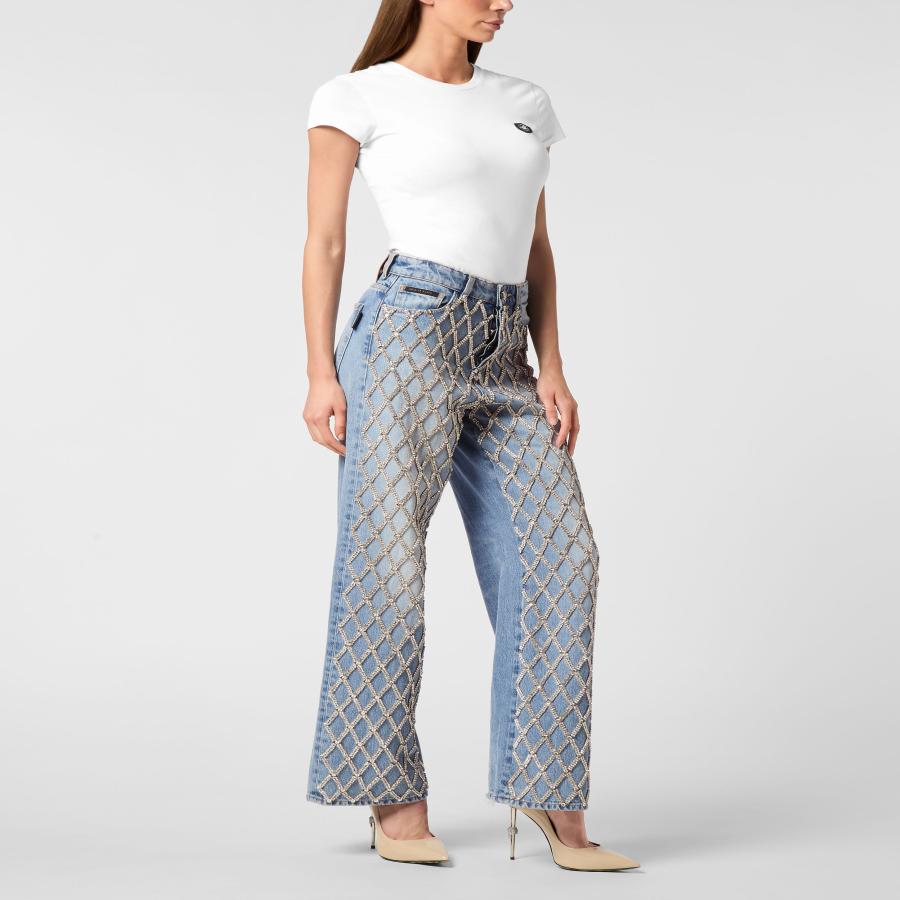Style and orginality with these denim 5 pocket pants featuring a basic fit and precious details. Find out more.
