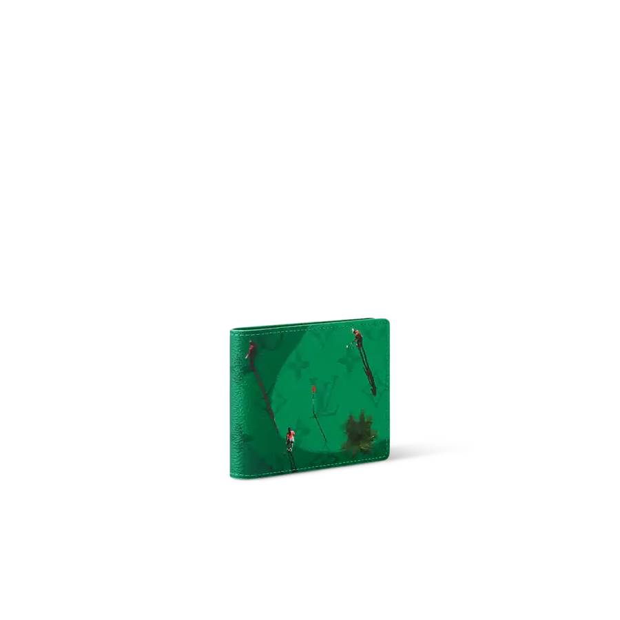 This Slender Wallet is made from colored Monogram canvas and features a playful print of a miniature sports scene. The subtle Monogram pattern almost disappears in the color of the background, elevating the photorealistic image on top.