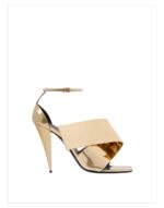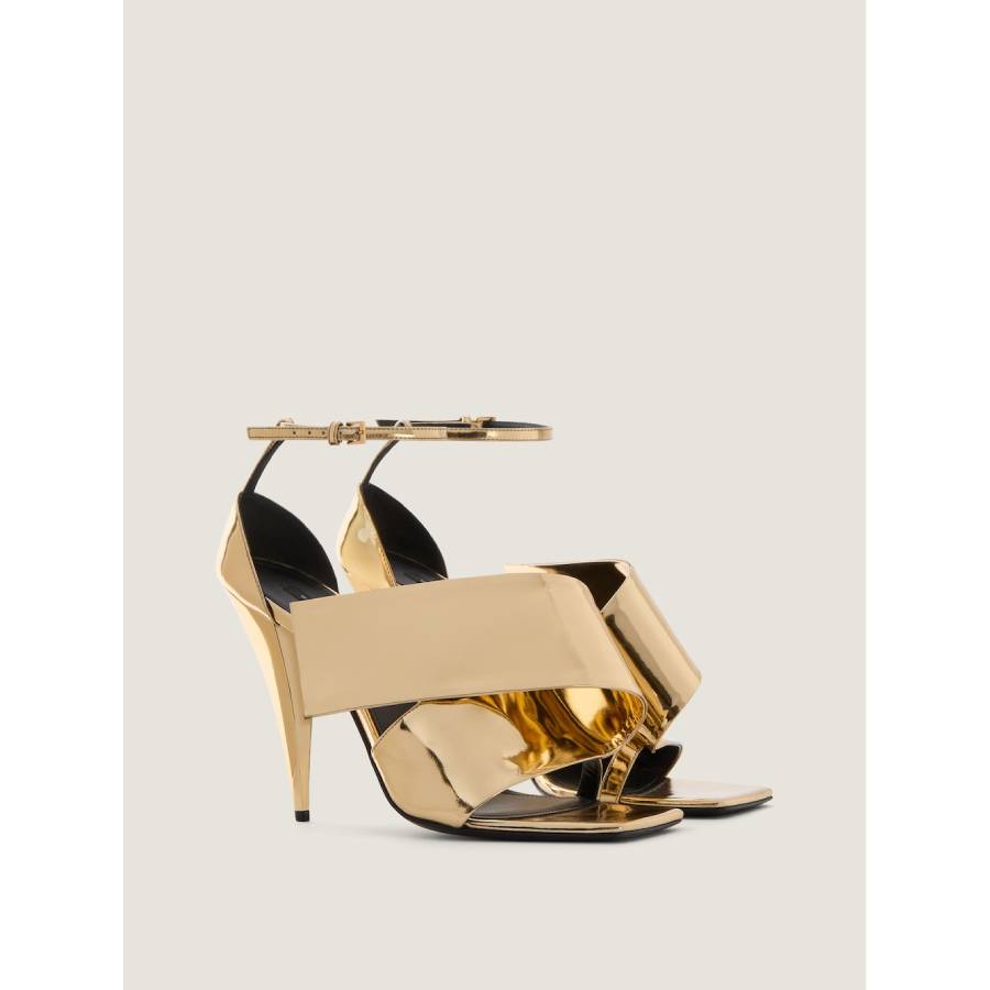 - Heeled sandals in mirror effect calfskin leather.